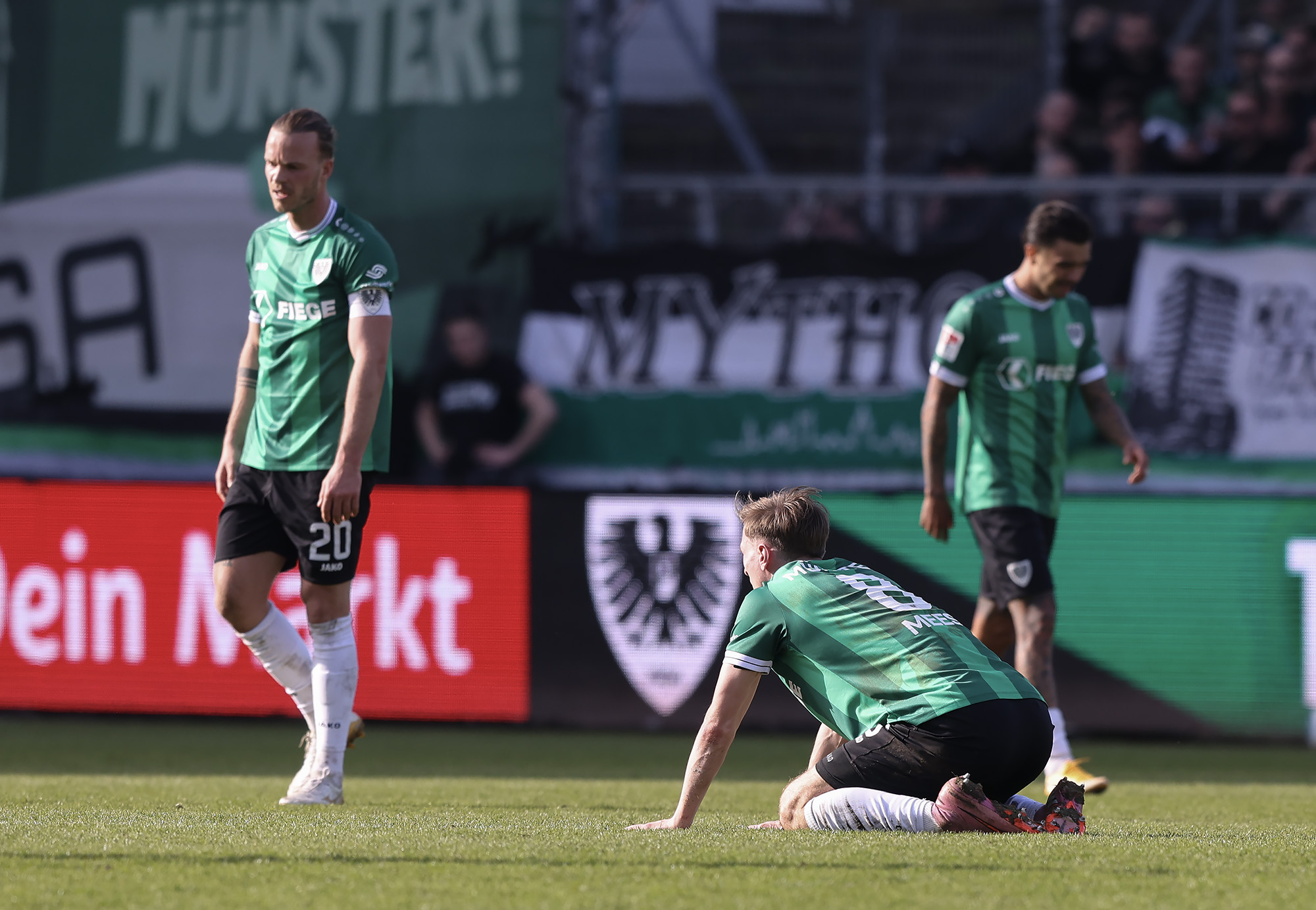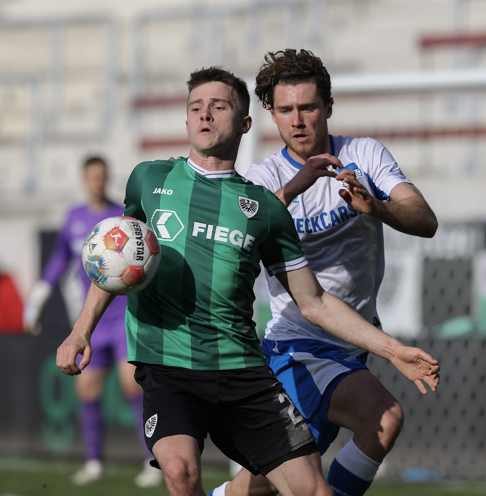 Nach dem Seitenwechsel brauchte der SCP nicht lange, um die passende Antwort auf den Rückstand zu geben. Die erste Minute nach Wiederanpfiff war noch nicht rum, da ließ Jannis Heuer nach Flanke von Oliver Batista Meier das ausverkaufte LVM-Preußenstadion beben. Der Ausgleich verlieh den Preußen sichtbar Stabilität. Und fast jede Offensivaktion lief über den Torschützen, der schon vor zwei Wochen gegen Kaiserslautern einen Doppelpack erzielte. Erst verpasste Heuer eine flache Hereingabe nur knapp (56.), etwas später setzte der Innenverteidiger nach einer geklärten Flanke zum Direktversuch an – auch hierbei fehlte nicht viel (70.). Die Gastgeber spielten jetzt klar auf Sieg, ließen aber im letzten Drittel zu häufig die letzte Präzision vermissen. Weil auch die Gäste zwei Chancen in der Schlussphase nicht nutzten, deutete alles auf eine Punkteteilung hin. Bis die Berliner in der dritten Minute der Nachspielzeit einen Konter perfekt ausspielten und in Person von Marten Winkler vollendeten.